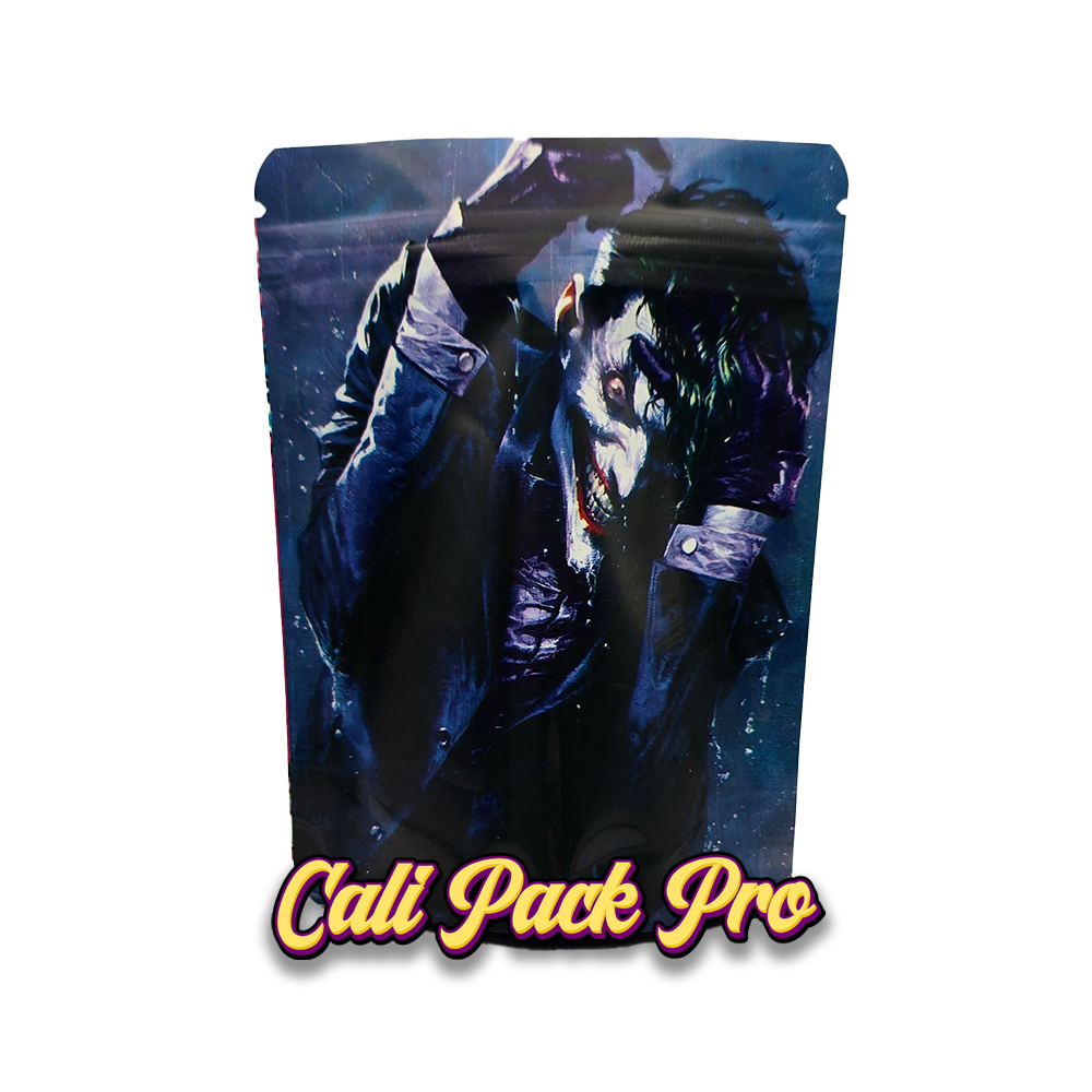 Berry Joker 3.5g Mylar Bag available in 1g, 3.5g, 7g, 14g, 28g, 112g, 224g, 448g, Food Grade PET + Aluminum, Glossy, Heat Seal + Zip Lock, Dry Herbs, Coffee, Edibles, Food Items.