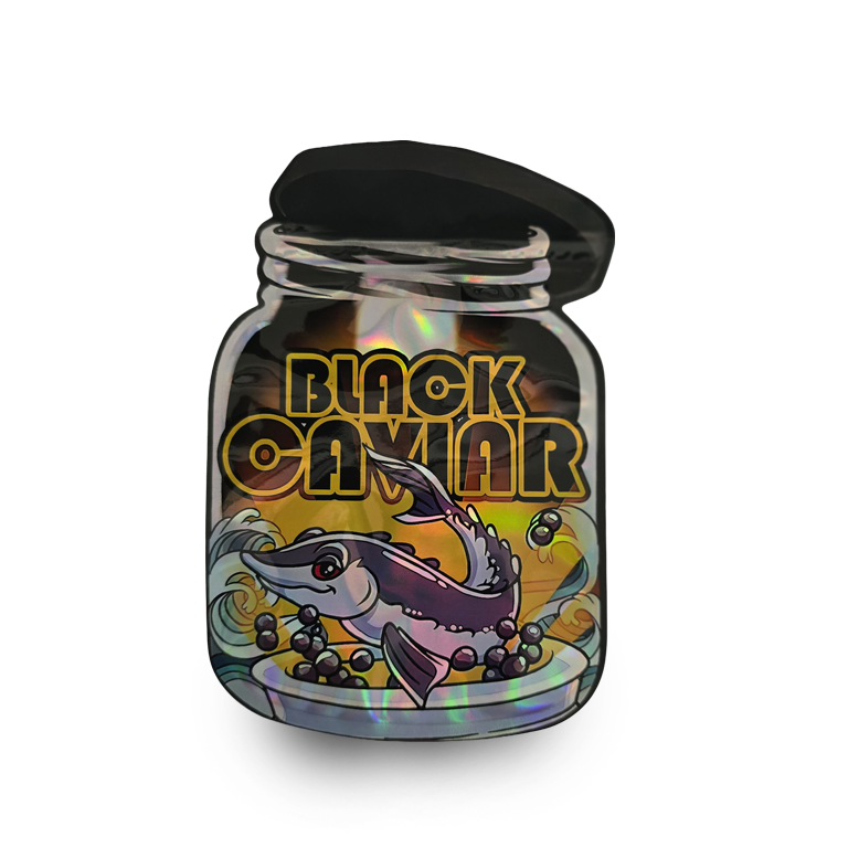 Black Caviar mylar bag. Each 3.5g Mylar Bag is carefully sealed to preserve freshness and aroma. Priced at £0.25.