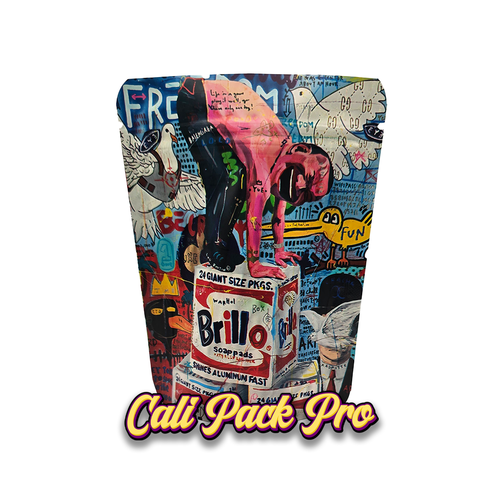 Brillo 3.5g Mylar Bag available in 1g, 3.5g, 7g, 14g, 28g, 112g, 224g, 448g, Food Grade PET + Aluminum, Glossy, Heat Seal + Zip Lock, Dry Herbs, Coffee, Edibles, Food Items.