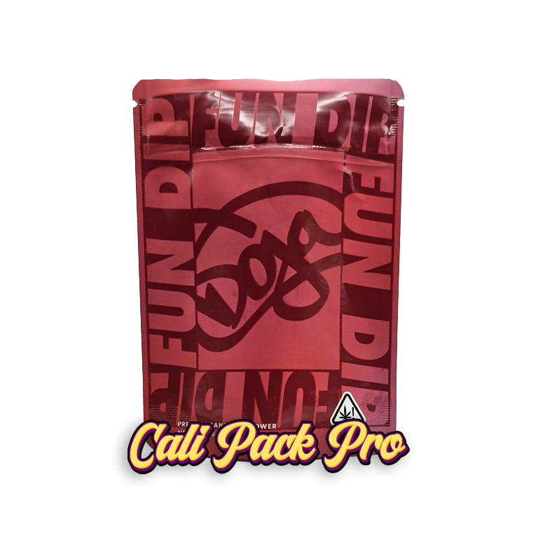 Doja Fun Dip 3.5 Mylar Bag available in 1g, 3.5g, 7g, 14g, 28g, 112g, 224g, 448g, Food Grade PET + Aluminum, Glossy, Heat Seal + Zip Lock, Dry Herbs, Coffee, Edibles, Food Items.