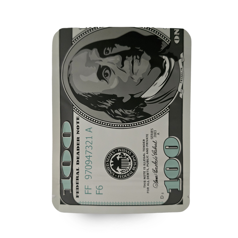 Mylar Bag available in 1g, 3.5g, 7g, 14g, 28g, 112g, 224g, 448g, Food Grade PET + aluminum, Glossy, Heat Seal + Zip Lock, Dry Herbs, Coffee, Edibles, Food Items.