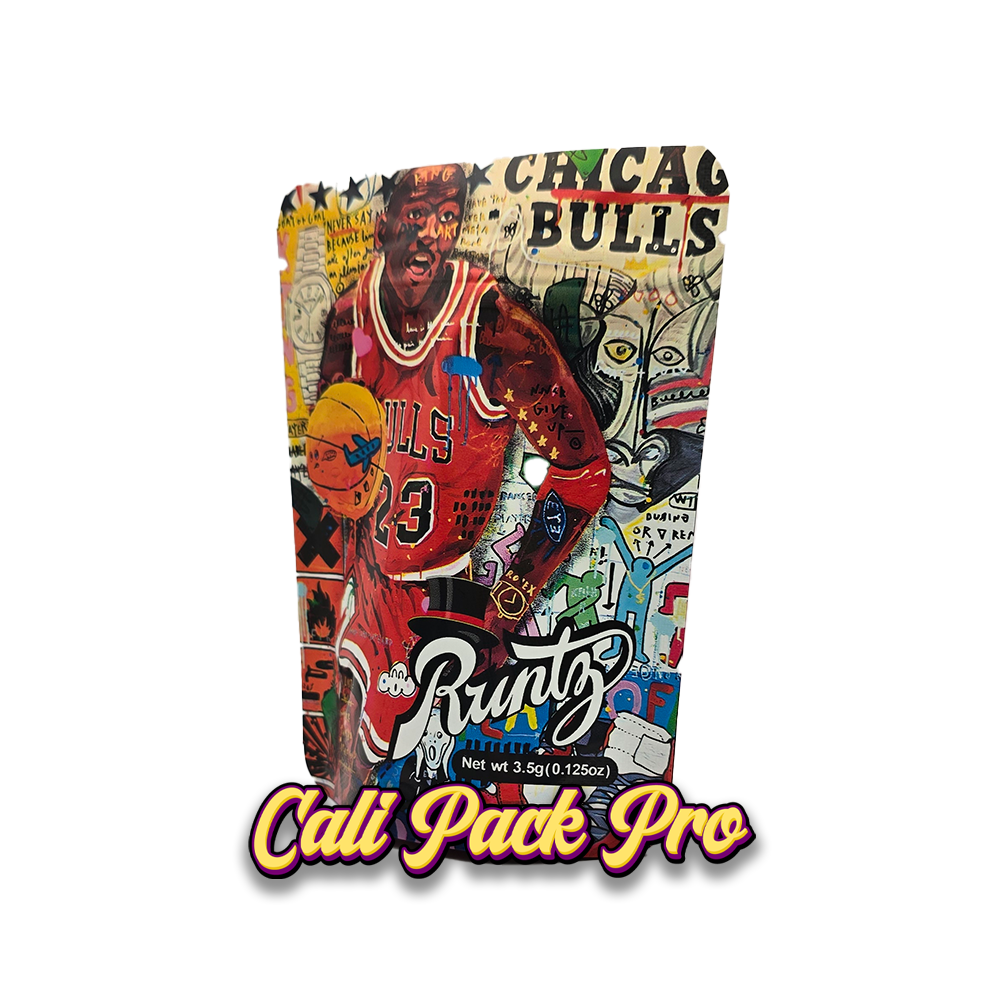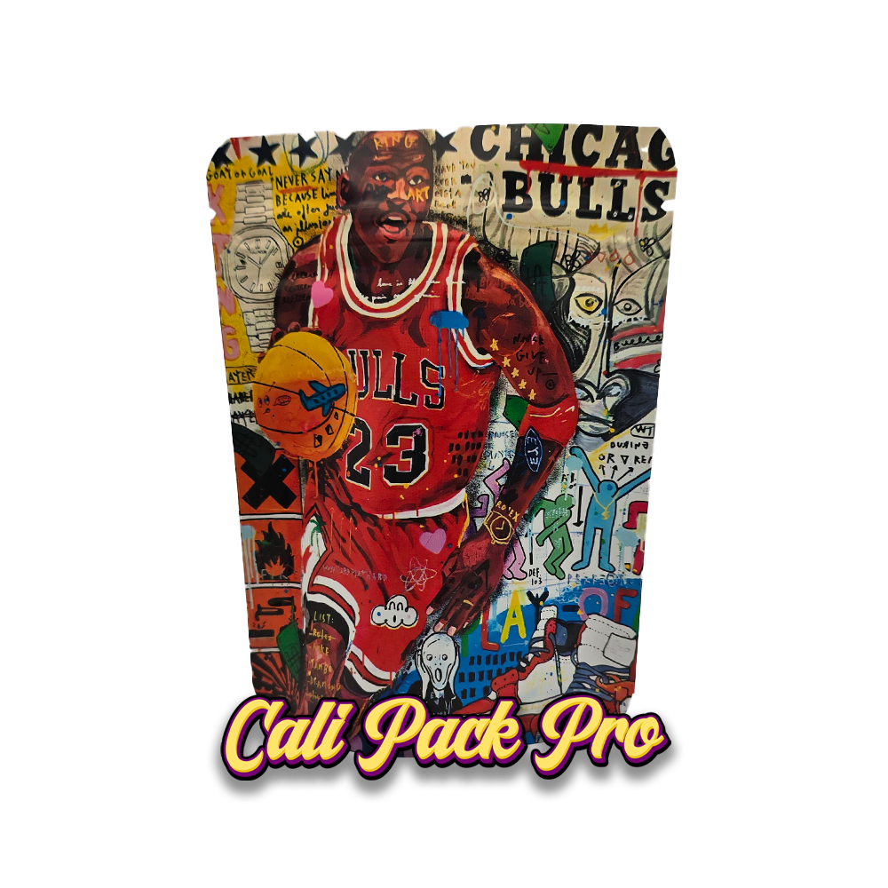 Michael Jordan 3.5g Mylar Bag available in 1g, 3.5g, 7g, 14g, 28g, 112g, 224g, 448g, Food Grade PET + Aluminum, Glossy, Heat Seal + Zip Lock, Dry Herbs, Coffee, Edibles, Food Items.