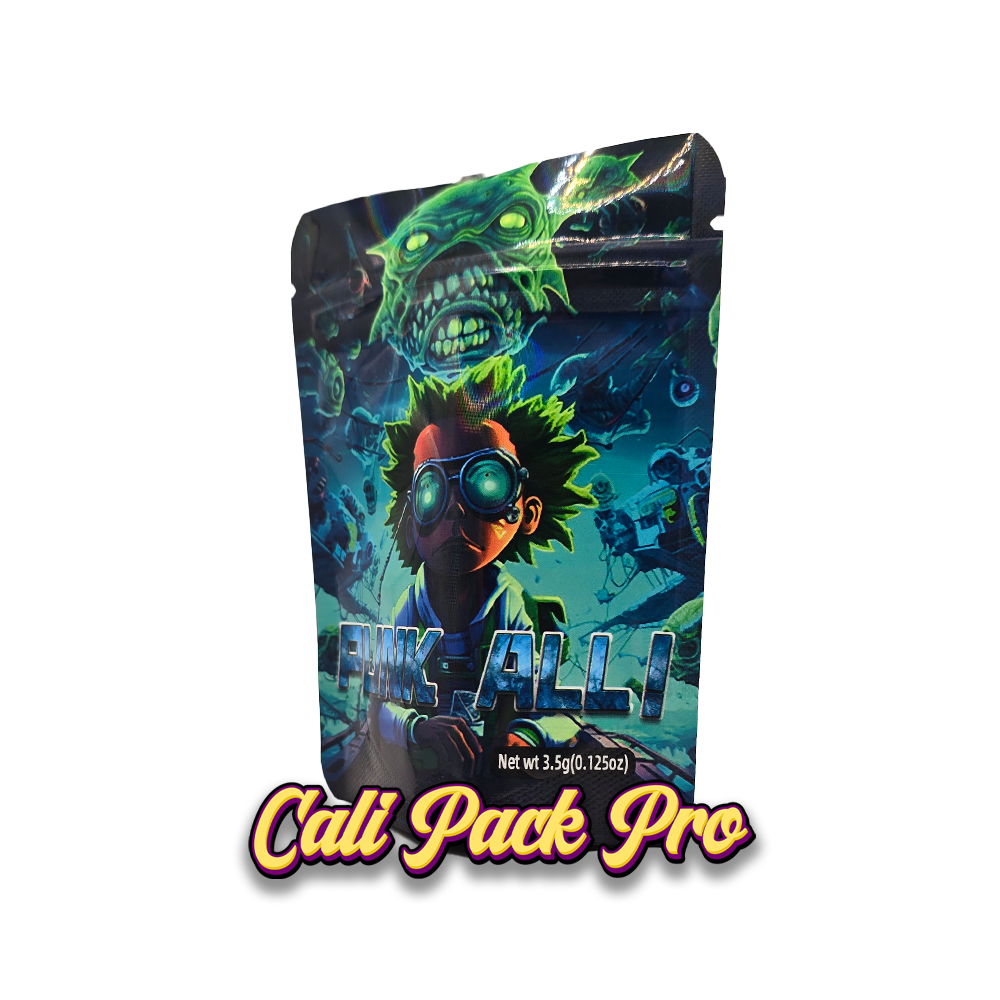 Punk All 3.5g Mylar Bag available in 1g, 3.5g, 7g, 14g, 28g, 112g, 224g, 448g, Food Grade PET + Aluminum, Glossy, Heat Seal + Zip Lock, Dry Herbs, Coffee, Edibles, Food Items.
