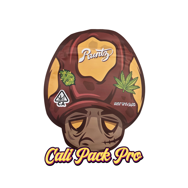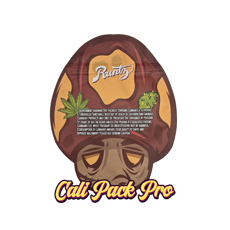 Shell Head Mylar Bag available in 1g, 3.5g, 7g, 14g, 28g, 112g, 224g, 448g, Food Grade PET + Aluminum, Glossy, Heat Seal + Zip Lock, Dry Herbs, Coffee, Edibles, Food Items.