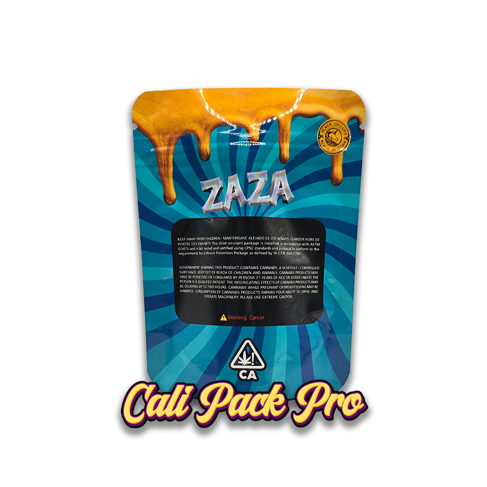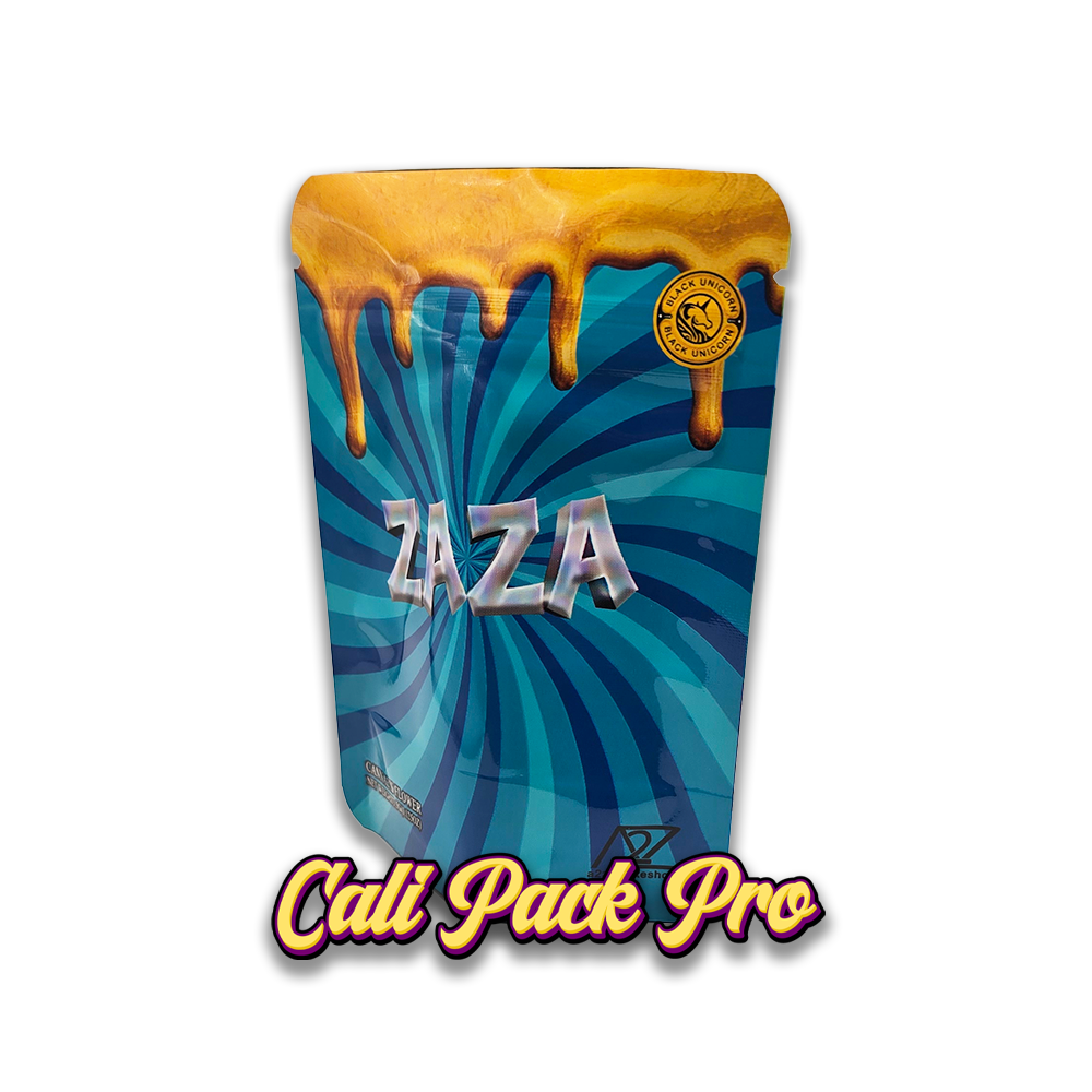 Zaza 3.5g Mylar Bag available in 1g, 3.5g, 7g, 14g, 28g, 112g, 224g, 448g, Food Grade PET + Aluminum, Glossy, Heat Seal + Zip Lock, Dry Herbs, Coffee, Edibles, Food Items.